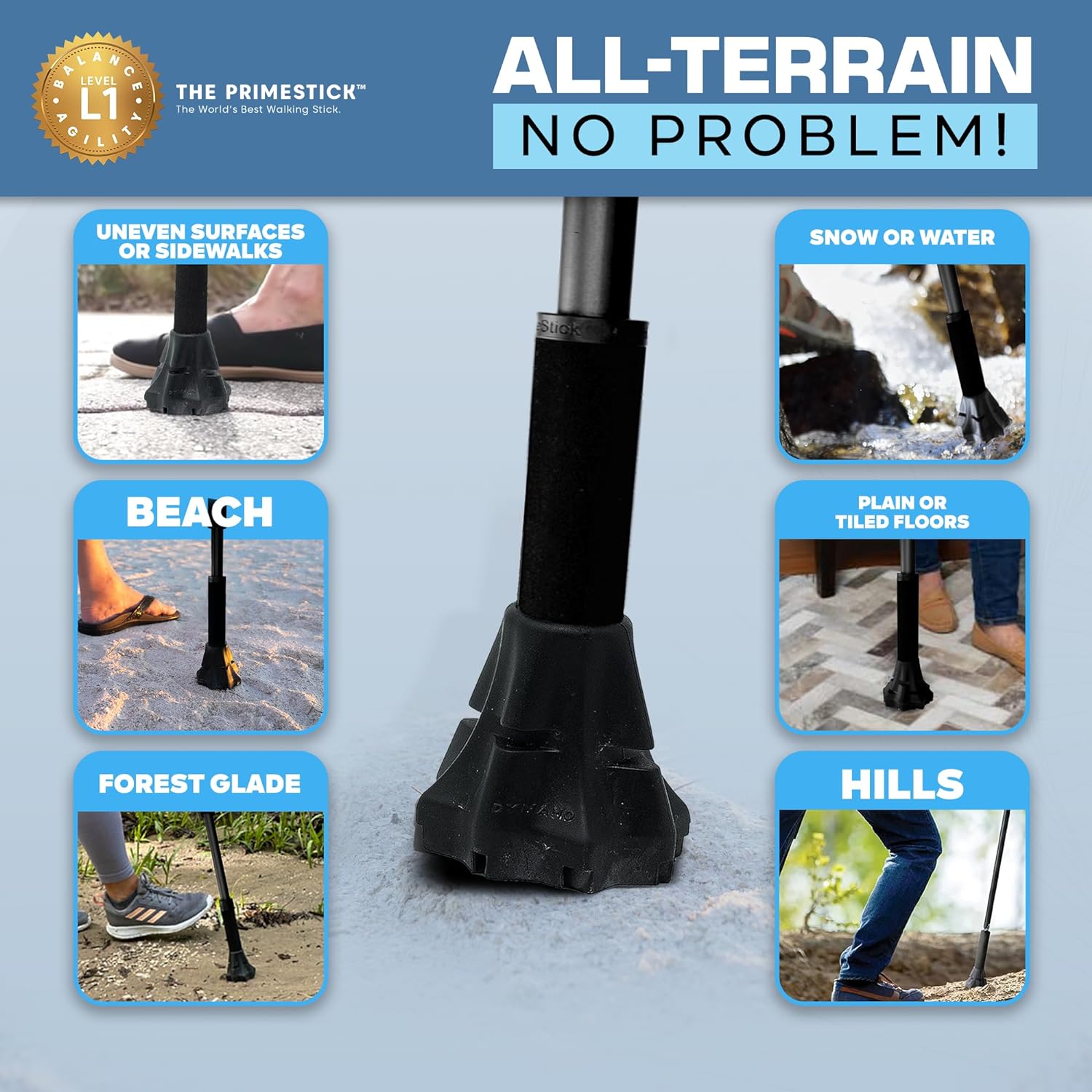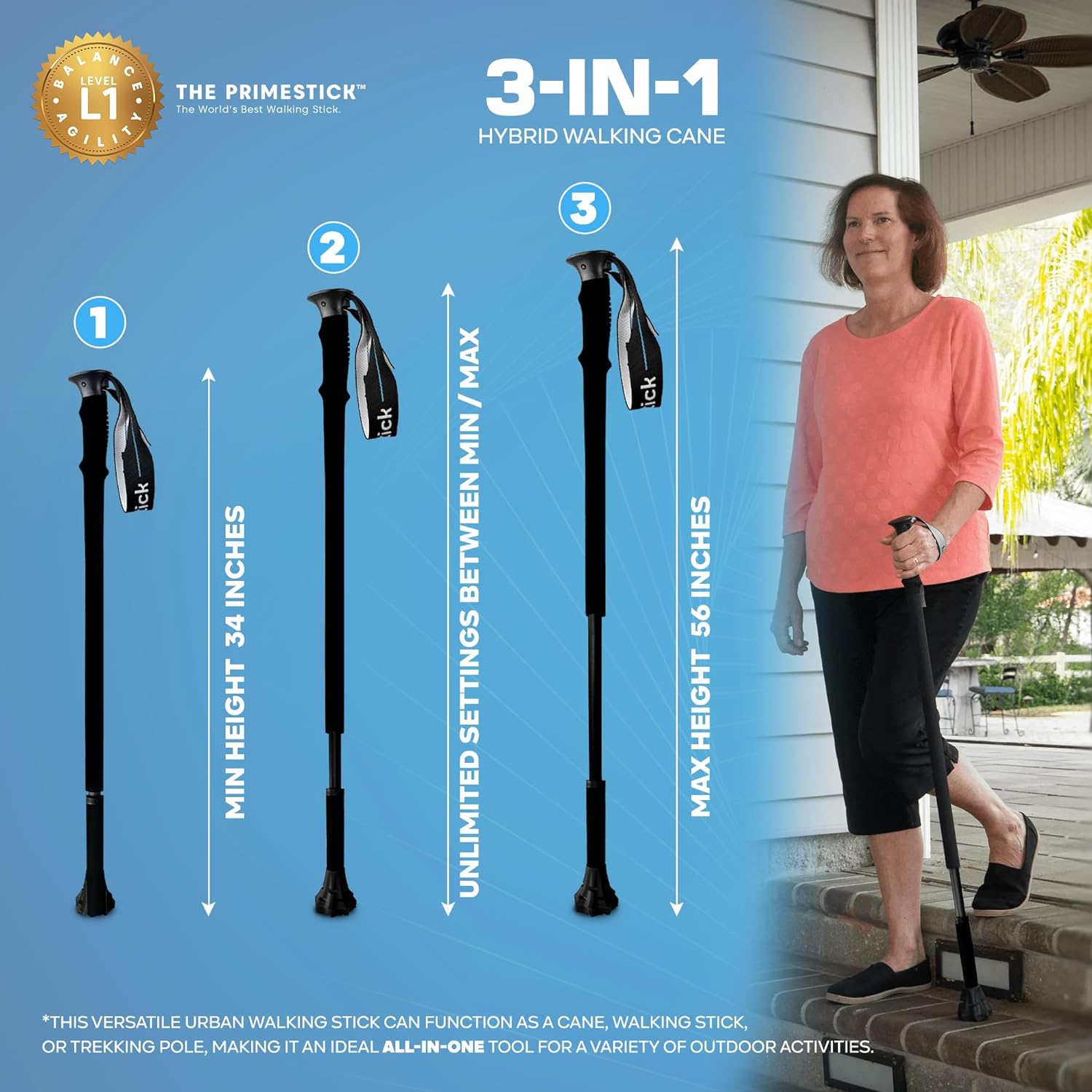 - PrimeStick (Level 1) – Best for light support, walking, hiking, or occasional use.
